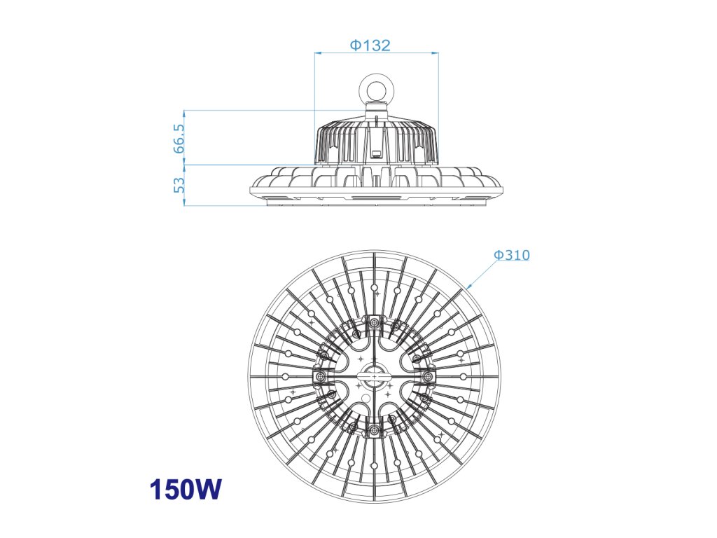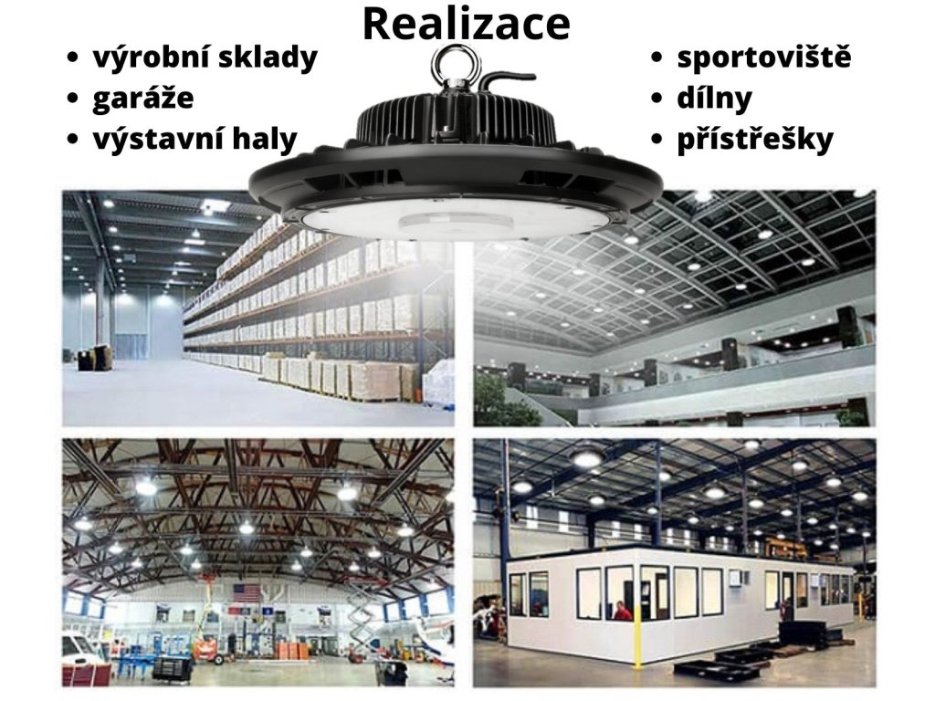 Se středním výkonem 150W, velmi efektivní a úsporné, závěsné LED svítidlo UFO High Bay je ideálním řešení při realizaci osvětlení výrobních a skladovacích prostor, hal, sportovišť, obchodních domů a dalších rozsáhlých objektů.