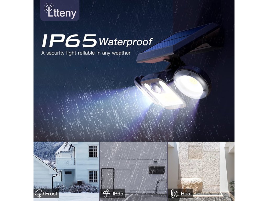 Solární světlo je vodotěsné s krytím IP65 a odolné vůči povětrnostním vlivům, vhodné pro všechny druhy nepříznivého počasí.