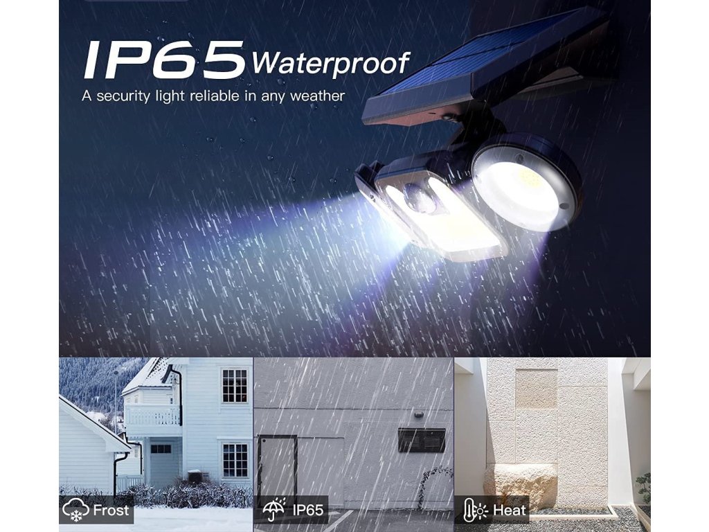 IP65 Vodotěsné a tepelně odolné – Skvělá venkovní noční lampa ideální pro osvětlení přední části domu, vstupních dveří, branek, stěn domu, prostoru před garáží, příjezdové cesty apod. Je speciálně navržena tak, aby vydržela extrémní povětrnostní podmínky za deště, mlhy, ale i sněhu, bez připojení k el. síti solárním provozem zdarma.