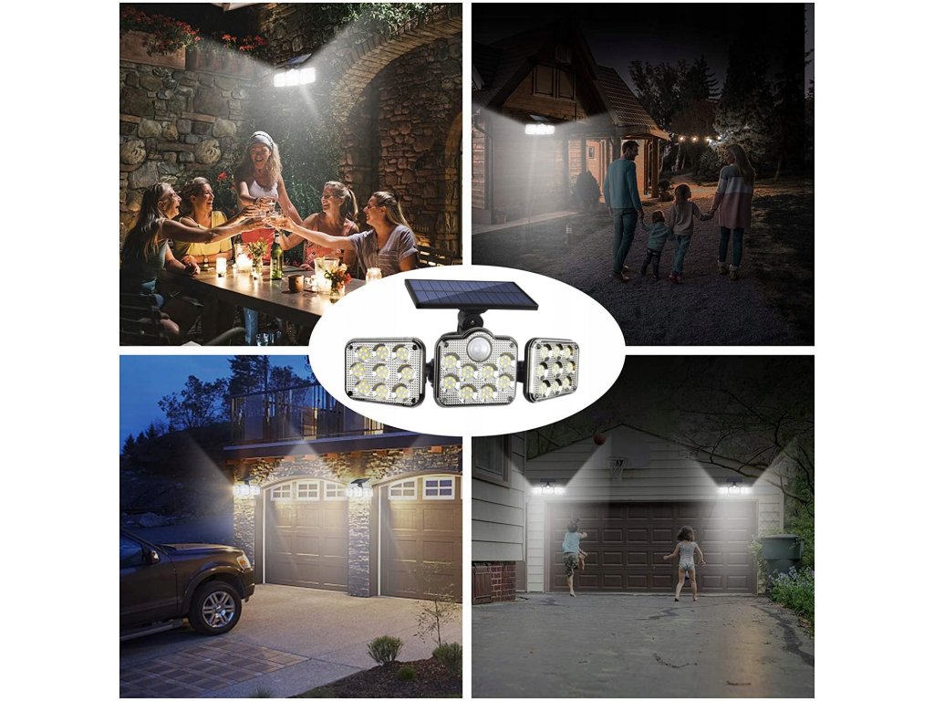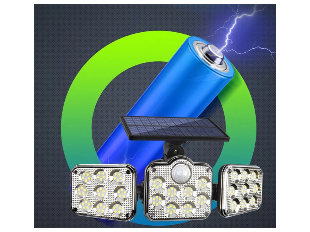 Solární LED reflektor s vysokou svítivostí až 1000 lumenů, s inteligentním soumrakovým spínačem, se třemi režimy svícení včetně senzoru pohybu osob.